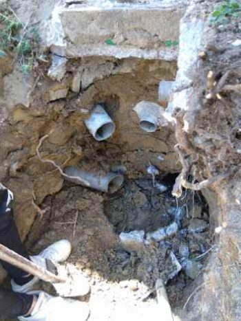 排水が漏れて土砂を流していました。