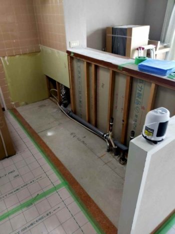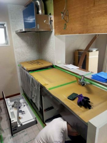 2日目は下地とシステムキッチン施工組み立て作業をさせて頂きました。