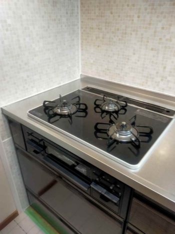 キッチン前のパネルもホーローでモザイクタイルが可愛くこれも goodです!