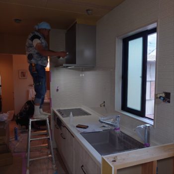 本日は 2階キッチン設置組立工事の様子の報告です。