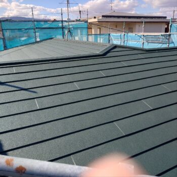 外壁塗装、屋根鋼板屋根材重ね張り工事完成