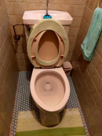 今回は電気屋さんでコンセント配線工事もしてウォシュレット付き便器を取付!
