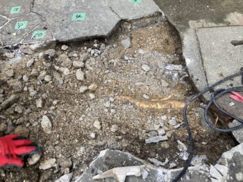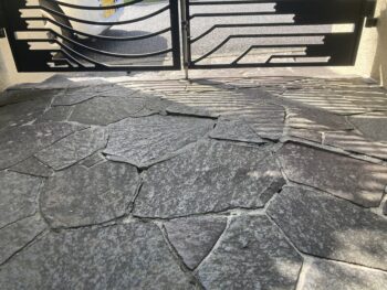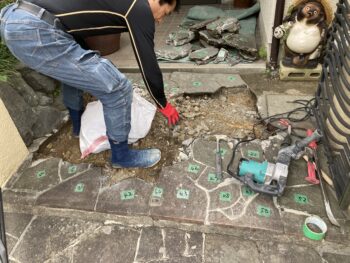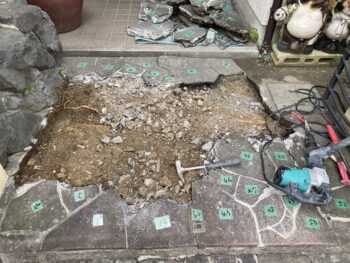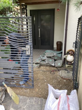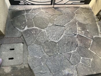 アプローチの鉄平石が持ち上がってきてひび割れてきて門扉が開かなくなって来たと相談されました。