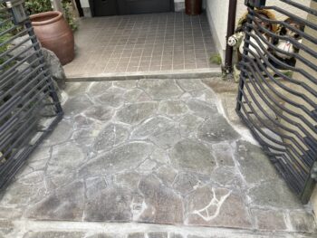 玄関アプローチ鉄平石改修工事