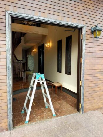 既存玄関ドアを撤去して、廻りの枠躯体だけ残し、