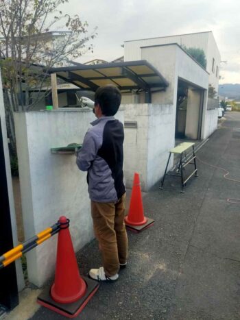 門廻りもイメージチェンジをするために左官屋さんで下地処理を進め