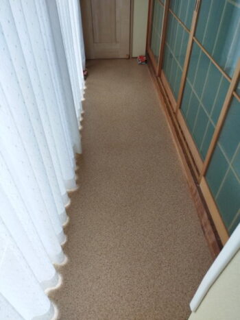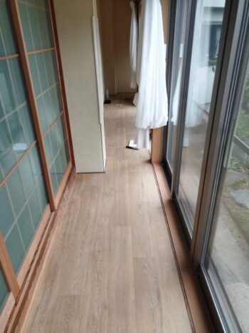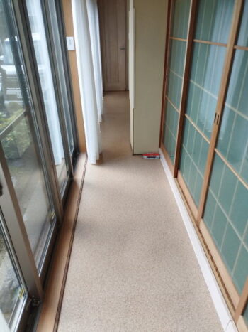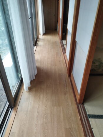 N様邸、母屋の縁側と離れの廊下の床、クッションフロア