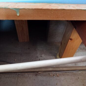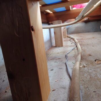 | 基礎際の束木補強↑↓ | かなりの荷重で、約5mmほどの改善です。 | |