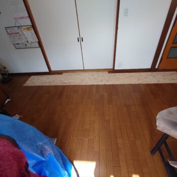 本日より玄関ホール、LDKの床の重ね張り依頼です。