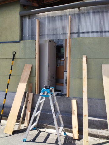給湯機置き場、出入口扉新設。