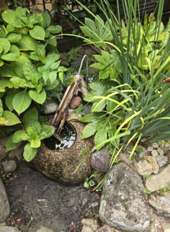 庭の水鉢に小鳥が水を飲みに来たり行水したりするのを楽しんでおられるそうです小鳥も気に入ってくれるといいですね