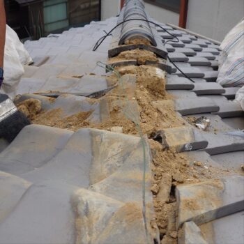 面戸漆喰がほとんど浮いている状態で