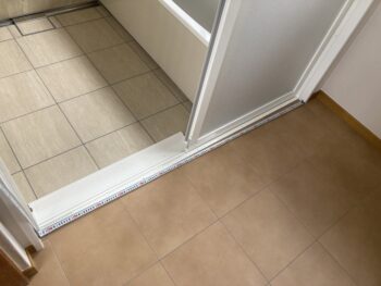 床は凹凸加工で濡れていても滑りにくいタイルです。