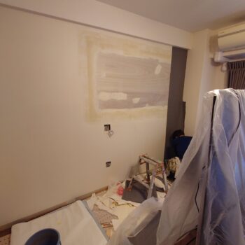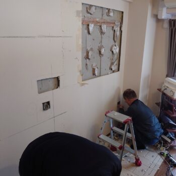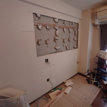 壁のエコカラット撤去と壁補強下地部の開口 |