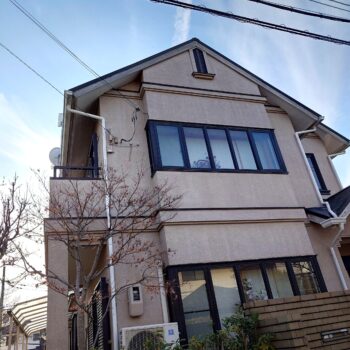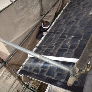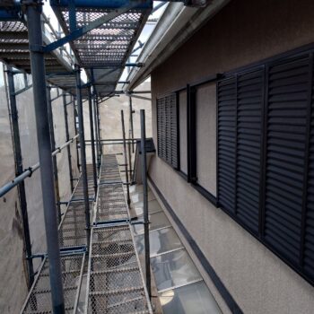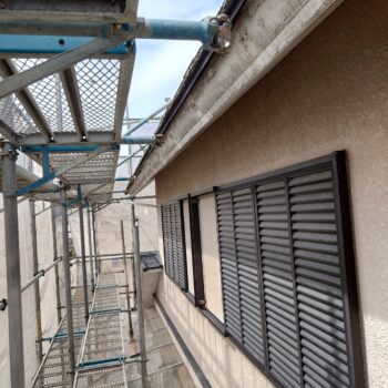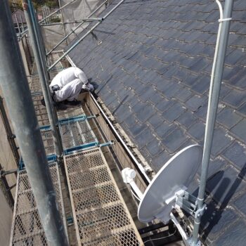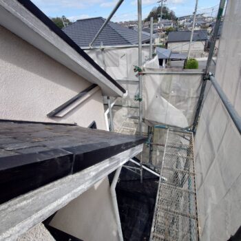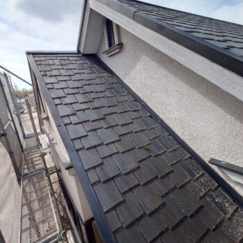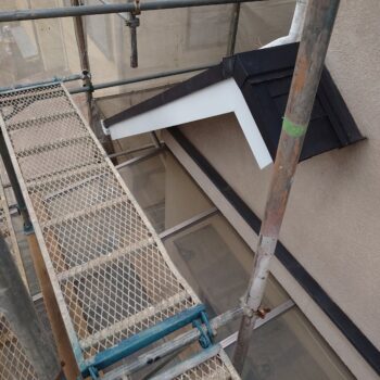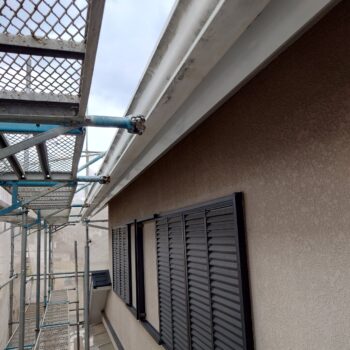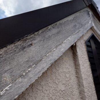 外部屋根廻りの木部の改修報告ですが、破風板とは屋根端部に取り付けている板部材、鼻隠し板とは屋根の軒先に地面と水平に取り付けている板、軒樋の裏にある板を鼻隠し板と言います。この板の塗装塗膜の劣化により木部の傷み防止の為