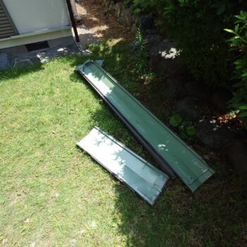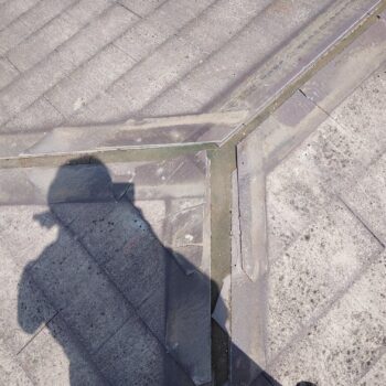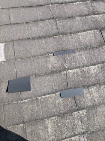 1階下屋の屋根は瓦割れ部分にガルバ鋼板差し込み修理での