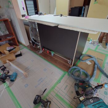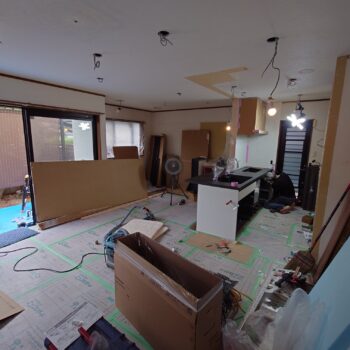 開放感のあるLDKに、本日はシステムキッチンの施工の様子の報告です。