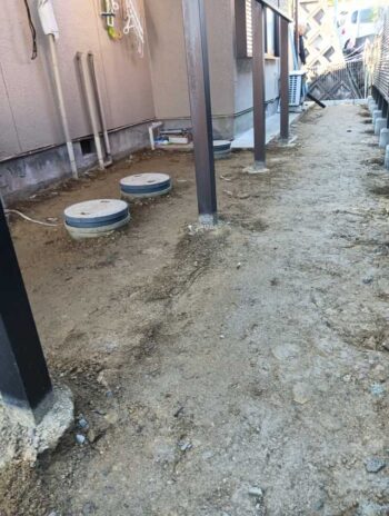 以前から少し気にされていた北側の境界部分 庭の土間コンクリート(雑草防止)を