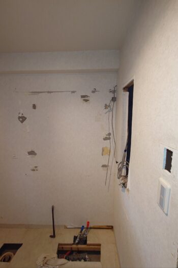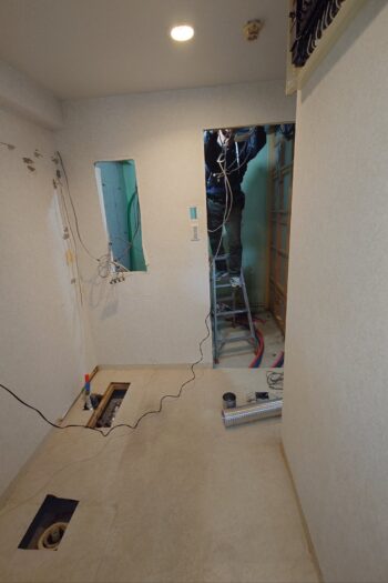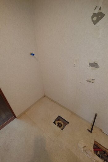 床の重ね張り、浴室、洗面台取替と全室の壁紙クロスの張替え