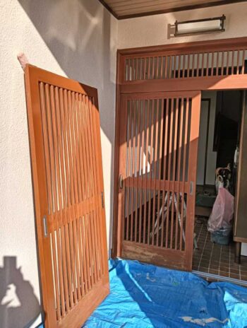 奈良市・I様邸 玄関引き違い戸メンテナンス塗装(保護塗装)