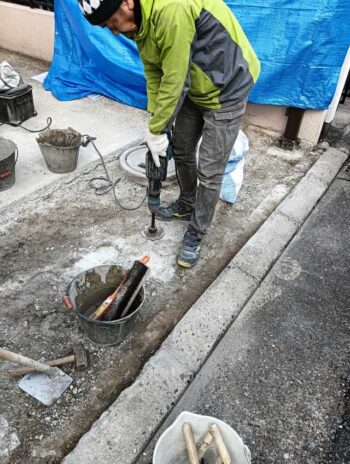 またガレージ部分の土間コンクリートもメンテナンス工事させて頂きました。