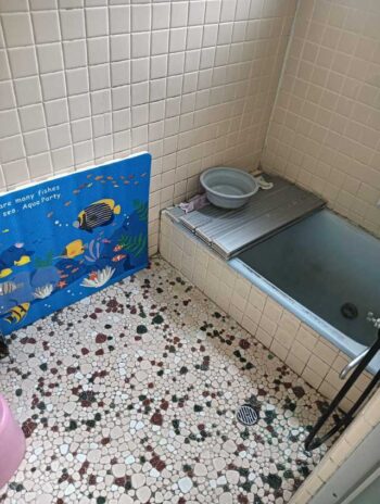 A様の浴室は在来工法で排水の流れが悪く