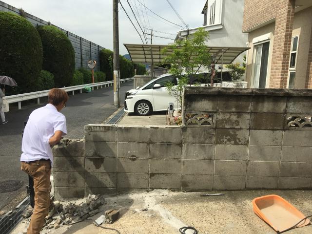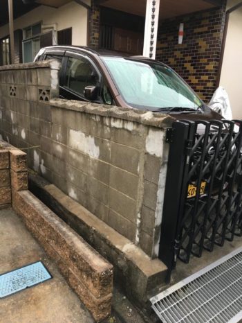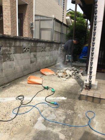 ガレージの土間にあちらこちらにヒビが入り ブロックのヒビが原因で倒れては困るので