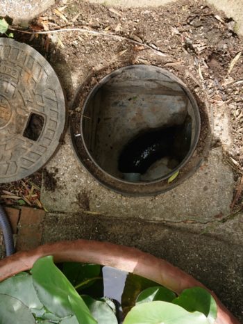 | 配管近くに植木が多く、根詰りかと。 |