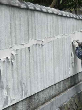 はく離後、塀及びその廻りを高圧水で洗浄していきます。