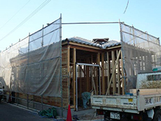 | お客様のご要望 | 二戸一住宅のお隣が壊されたのをきっかけに、これからの老後をずっと快適に住めるように建替えることに。 |